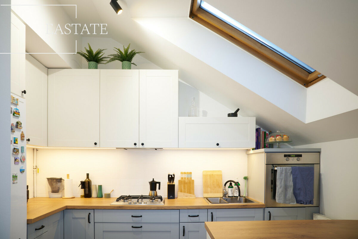 Funkcjonalny układ i dodatkowa przestrzeń - Na antresoli o powierzchni ok. 8 m² można urządzić sypialnię, gabinet lub strefę relaksu..